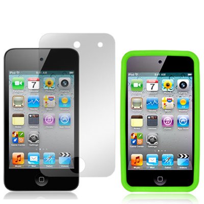 4G Touch Green Silicone Protective Armour Case Cover & Screen Protector Kit for New Apple iPod Touch 4th Generation - 8GB 32GB 64GB